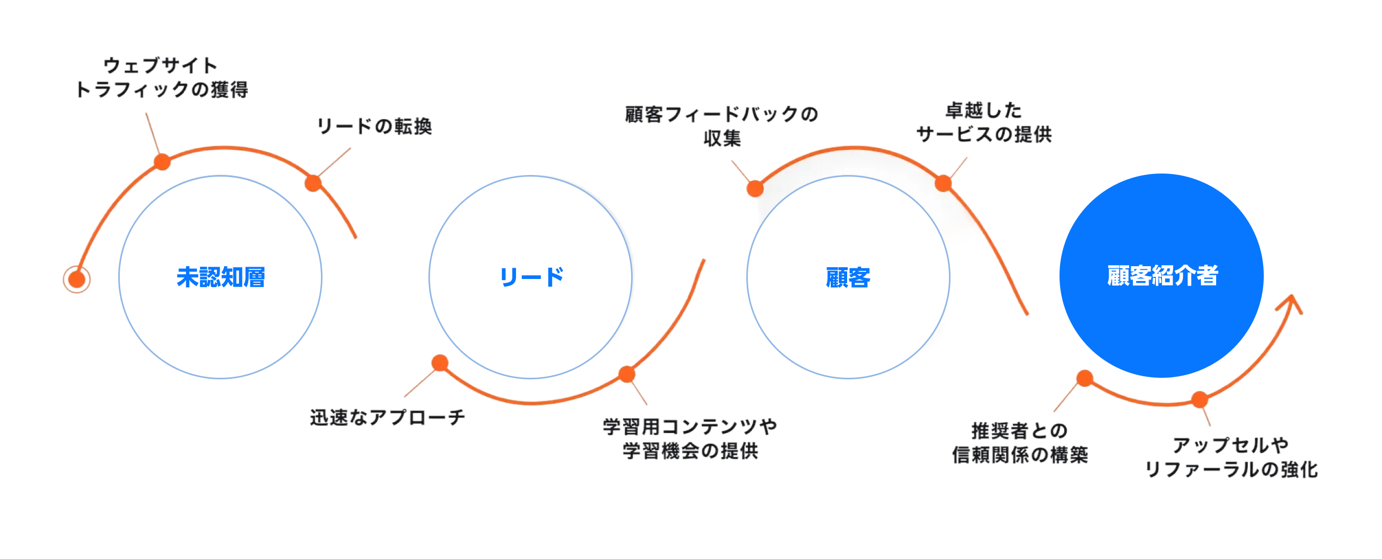 接点から成約までの流れを可視化し、成果の出る要因を特定します。