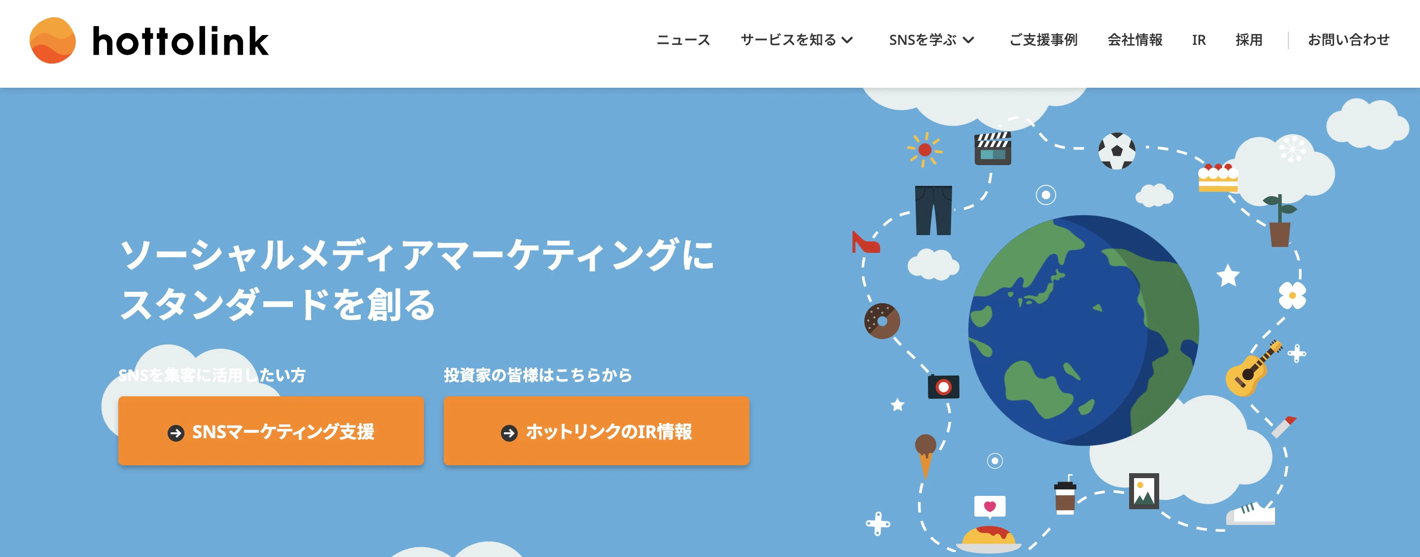 詳細 | hottolinkは、SNSのコンサルティングから運用代行、運用型広告、インフルエンサーマーケティング、クリエイティブ制作まで幅広くサービスを提供しています。データドリブンで再現性の高い原因分析、仮説検証、最適なプロモーション提案といったマーケティング活動の支援を得意としています。