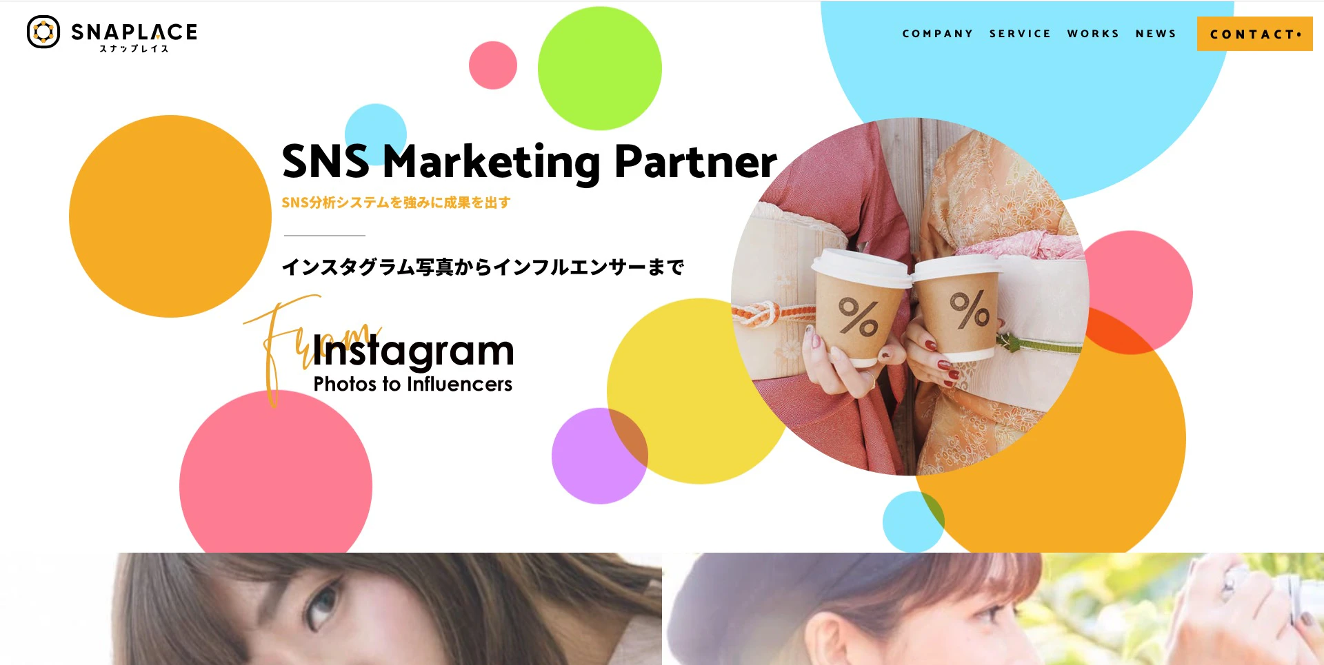 SNAPLACEはSNSマーケティングサービスを提供している会社です。Instagramをはじめとして、TikTokやTwitterなど様々なSNSのマーケティングを得意としています。また、インフルエンサーのキャスティングや写真撮影代行、インスタグラムツールの提供もしており、SNS周りの幅広いサービスを展開しています。
