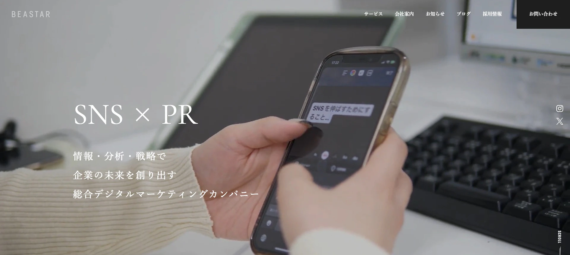 詳細 | BEASTAR(ベアスター)は、YouTube、Instagram、Twitterのコンサルティングや運用代行をはじめとした、ソーシャルマーケティングに特化した企業です。SNSのキャンペーン企画やインフルエンサーマーケティング、広告運用などSNSに関するさまざまな施策を実施。運用6ヶ月でフォロワー0人から10,000人まで増加させるなど、実績も確かです。