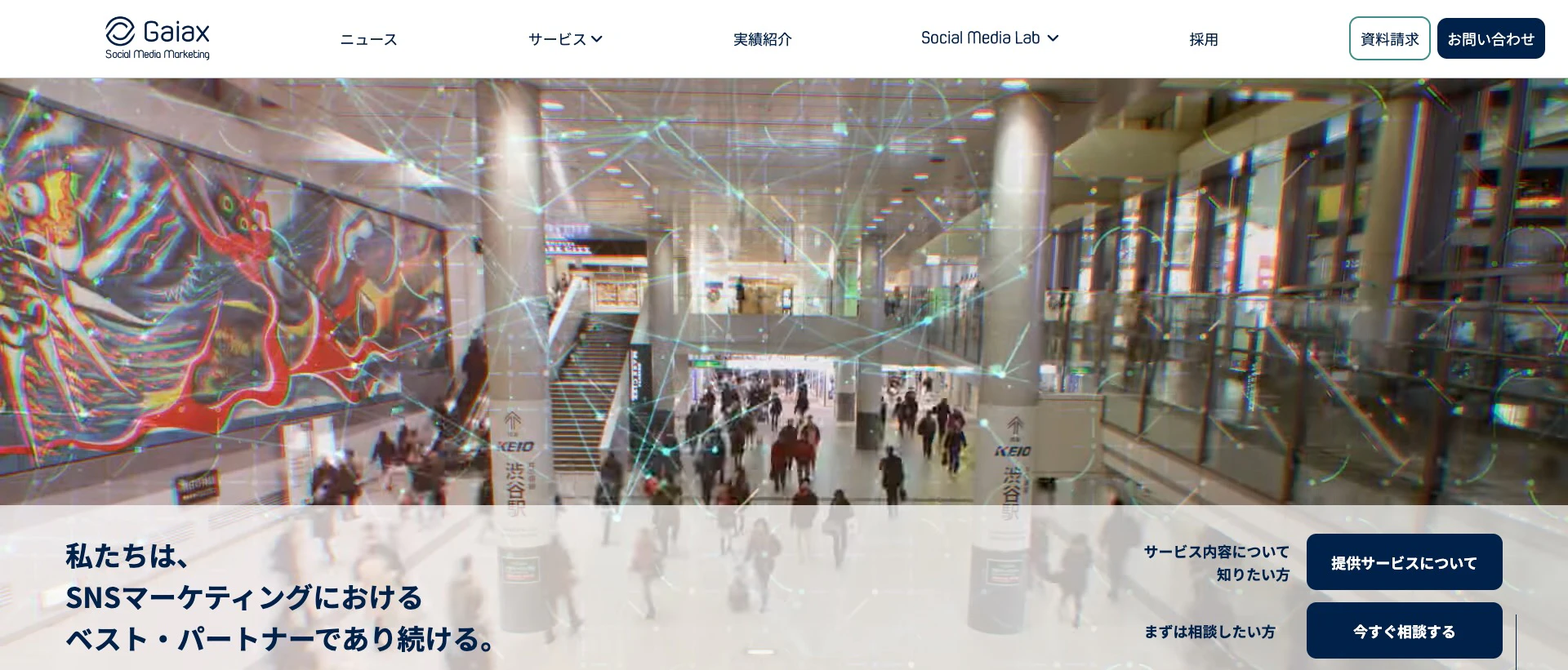 詳細 | ガイアックスソーシャルマーケティングラボは、ソーシャルマーケティングに関するさまざまな悩みに対し、ワンストップでサポートするサービスです。Twitter、Instagram、Facebook、LINEなどの主要SNSを網羅的に支援。累計1,000社以上の支援実績をもとに、クライアントの課題にマッチした運用プランを提案し、効果の最大化につなげます。