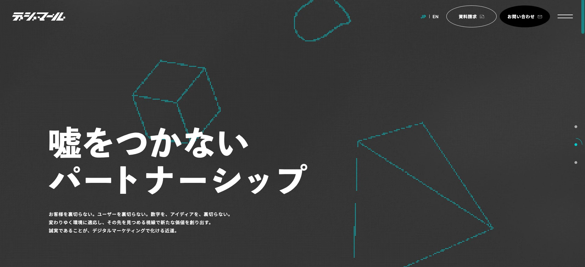 デジマールは、デジタル広告やクリエイティブ制作を行うデジタルマーケティング会社です。デジタル広告では、リスティング広告やFacebook広告、Instagram広告、Twitter広告、LINE広告、Amazon広告、Pinterest広告、TikTok広告、YouTube広告などを扱っています。また、動画制作やランディングページ制作なども展開しています。